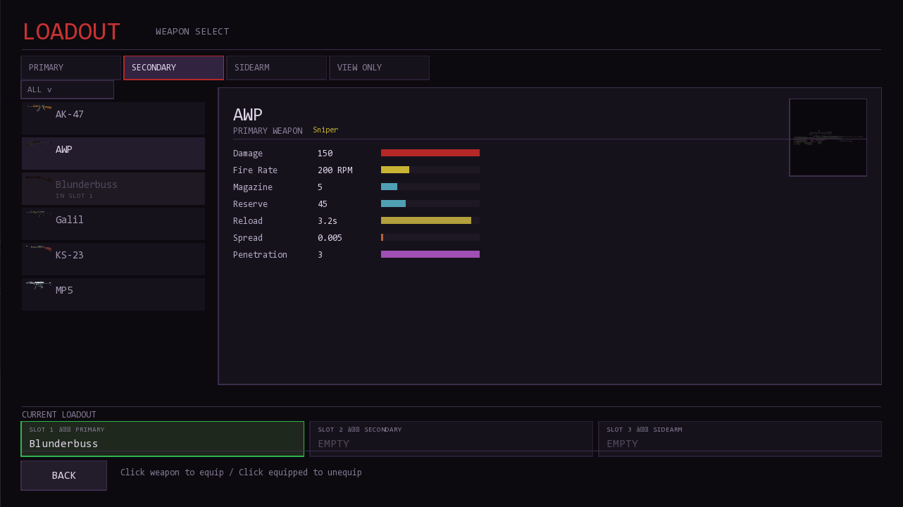 Weapon Load-outs (Select gear for each level)